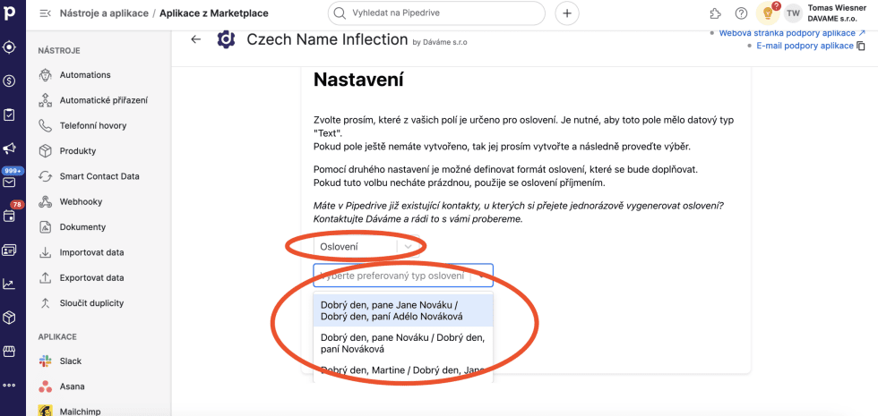 Generátor oslovení do e-mailů - rozšíření do Pipedrive (návod na instalaci)