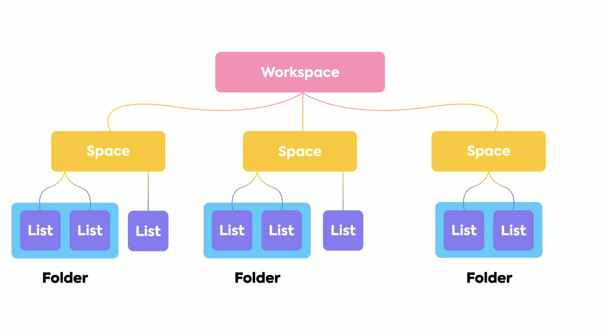 ClickUp se pyšní sofistikovanější hierarchií: workspace => space => folder => list => task. Přičemž každý space si můžete představit jako jedno oddělení, které si procesy a styl práce může nastavit nezávisle na ostatních podle toho, jak mu to vyhovuje.