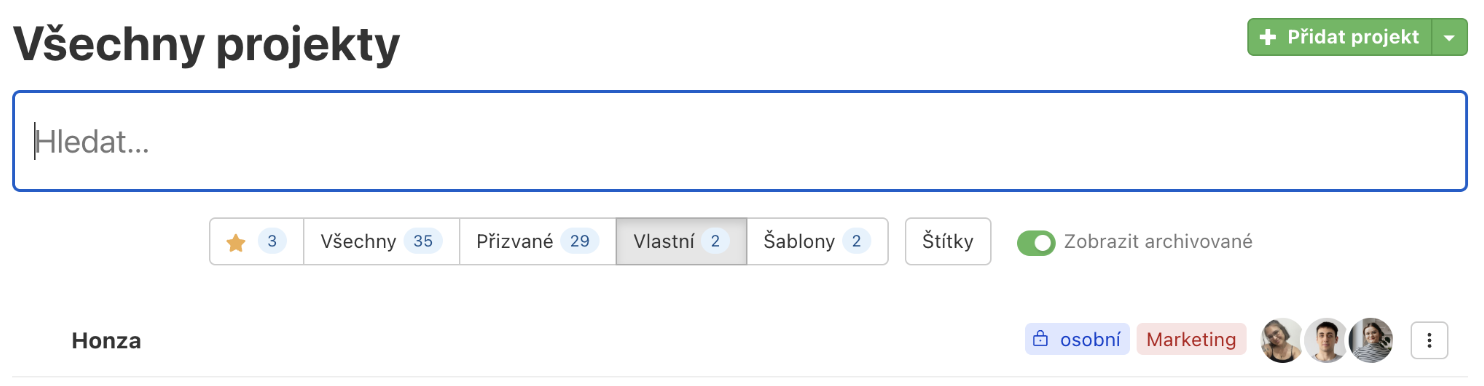 Obrázek: Freelo – struktura projektu