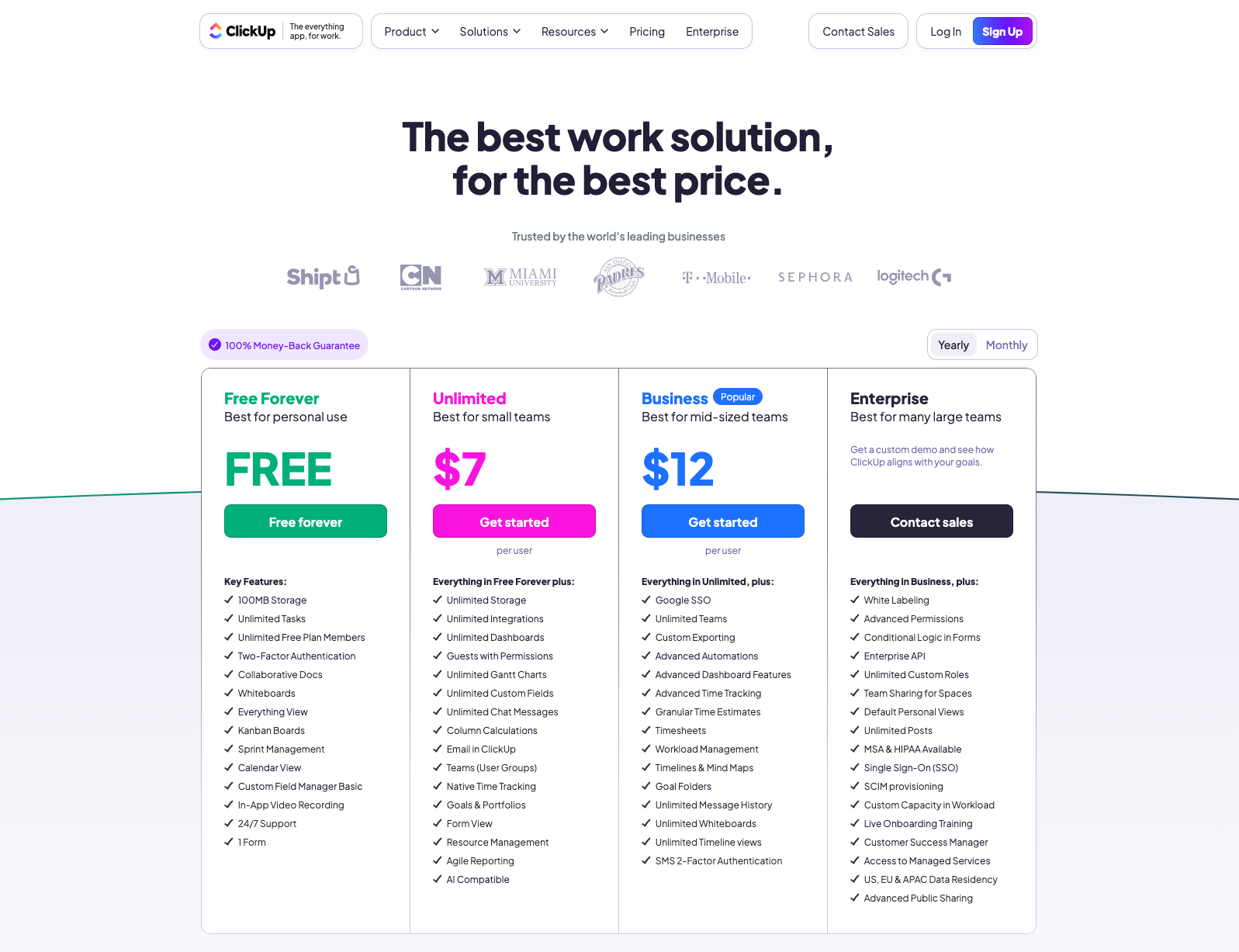 Cena ClickUp vs. Trello